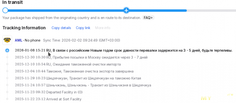 У меня единственный заказ за последние полгода с Али, сделанный во время распродаж — 24 ноября, так ещё и не приехал. И спор открыть не дают — пишут, чтобы дальше ждал. С Озона всё давно приехало.