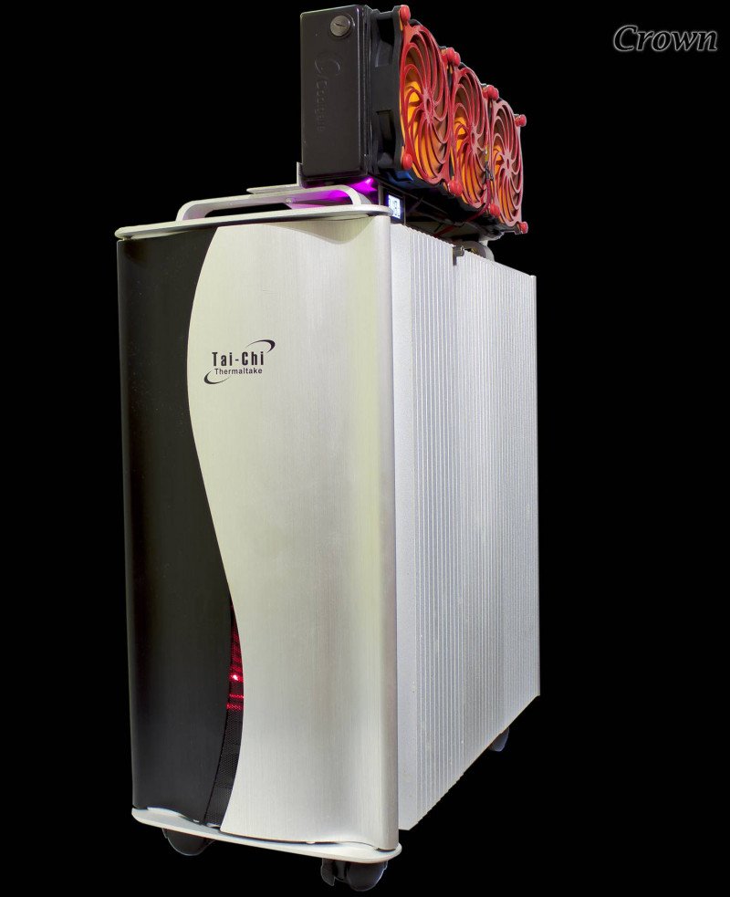 Сама идея обводнить только процессор — вообще никакая. Если обводнять, то всё (ну или почти всё, так как БП с двухкратным запасом по мощности, обводнять нет никакого смысла). Далее — основной источник шума в компе — вентиляторы. Здесь убрали один вентилятор с процессора и добавили два на радиатор и один на VRM (потому что он охлаждался процессорным вентилятором, а теперь ничем). Про фантазию об обледенении VRM без охлаждения промолчу :) Поэтому в идеале вениляторы должны быть только на радиаторе с оборотами в 600-850. Вот тогда будет действительно тихо. Насчёт красоты — если руки растут из нужного места, то полностью обводнённый комп смотрится на порядок лучше обозреваемого недоразумения. Чтобы ко мне не было дурацких вопросов — я лет пять поначалу пользовался уродцем, типа обозреваемого (заводская водянка была встроена в корпус Thermaltake Tai-Chi), а затем 13 лет и по сегодняшний день — кастомная водянка с шестью водоблоками, двумя помпами и тремя вентиляторами на всю сборку. На нормальные вопросы конечно отвечу, если такие вдруг будут :)