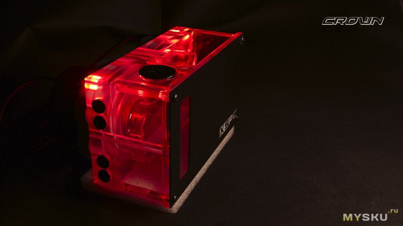 Рассмотрим поближе. Водоблок со встроенной в корпус помпой и подсветкой.