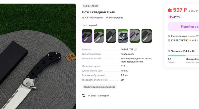 Я живу в Казахстане, и с покупкой ножей по адекватным ценам вечно какие-то проблемы. Одно время выручали маркетплейсы, такие как ВБ и Озон. Но несколько месяцев назад, что-то произошло в законодательной базе, и ножи, за исключением кухонных, из РФ, просто не показываются при поиске. А показываются только казахстанские продавцы, у которых выбор намного меньше, но зато иногда бывают весьма привлекательные цены.