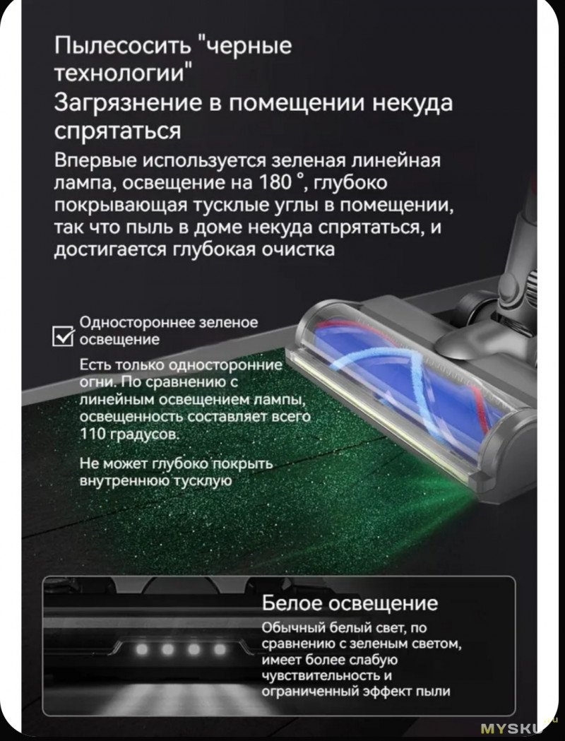 И на кой ляд подсвечивать пыль прямо перед щеткой, все равно в следующую секунду ее засосет?