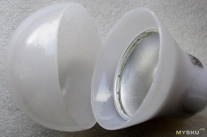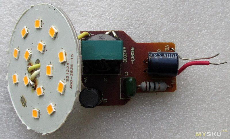 Герметик имеется. Элементы драйвера (он тут импульсный, не линейный) скрыты в недрах корпуса, видим только 25 светодиодов.
