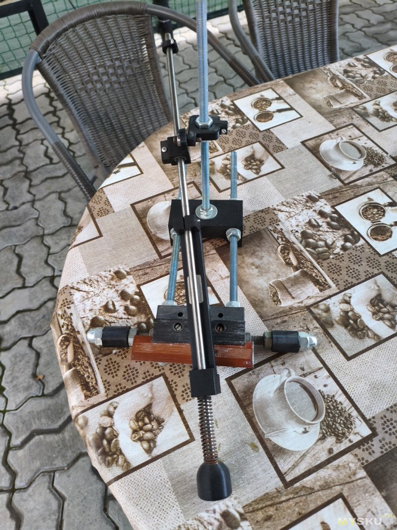 А то, что у вас на фото… не знаю. Во-первых неудобно, лучше сразу руками. Во-вторых даже с цельным валом-штангой 8мм и классической схемой есть вопросы к жёсткости конструкций. Что уж говорить про это чудо инженерной мысли, где я насчитал 5 шарниров :)