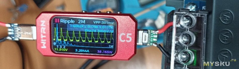 В остальном: довольно компактный, не шумит и не греется, падение напряжения под нагрузкой не значительное (если грузить наполовину). Видимые пульсации отсутствуют. Стоит недорого.