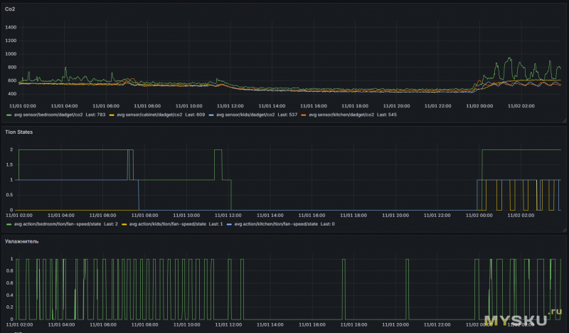 саму установку включаю/выключаю через умную розетку в умном доме, в зависимости от показателей CO2, температуры внутри и на улице…
