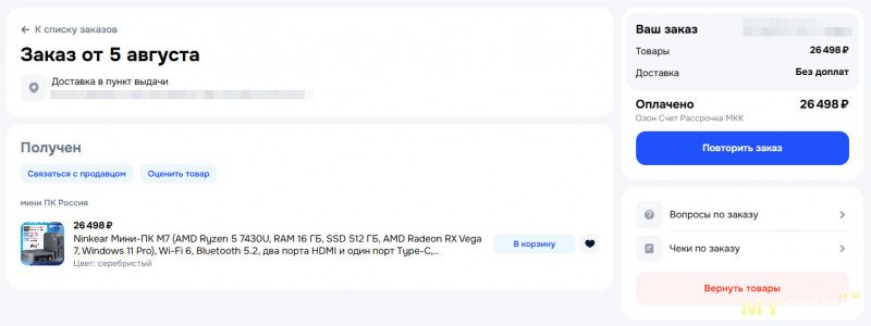 Зачем купил? Все оказалось просто: мне нужен был компактный компьютер, который можно тихо спрятать за монитор, подключить к нескольким устройствам и не переживать за шум, нагрев или лишние провода. Я хотел недорогую, но при этом достаточно шуструю машину для повседневных задач: от работы и браузера до экспериментов с виртуальными контейнерами и монтажем видео-роликов. После нескольких недель метаний между ноутбуками, системниками и очередным зоопарком китайских мини-ПК я понял, что оптимальный вариант — это небольшая коробочка современным процессором, нормальным охлаждением и возможностью подключить все, что мне нужно. Именно поэтому я и решил попробовать Ninkear M7: модель показалась тем самым искомым вариантом, который не разочарует через пару месяцев использования. Я провел с ним бок-о-бок три месяца и готов поделиться своими наблюдениями. Сделав заказ на одном синем маркетплейсе, я получил свою серую коробочку за 9 дней. Абсолютный рекорд для заказов из поднебесной, несмотря на закрытие границ с Казахстаном и огромные пробки. Как так вышло, наверное, тема для отдельного обсуждения, но вот он, на моем столе, готовый к пристальному изучению и беспристрастному тестированию.