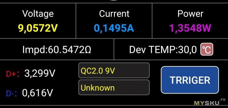 Показания дисплея практически совпадают с показаниями USB — тестера.