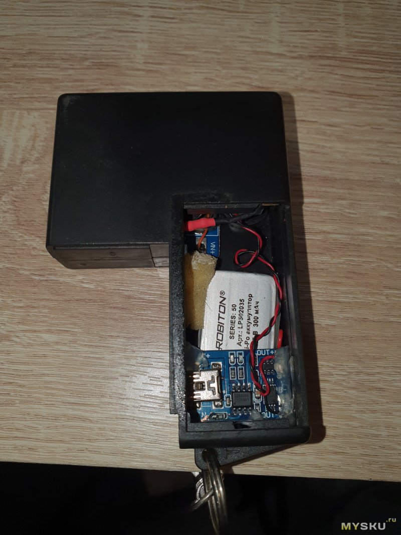 Очень компактный, с дыркой под шнурок для повешивания и с тумблером выключения(крону не жрёт пока лежит)