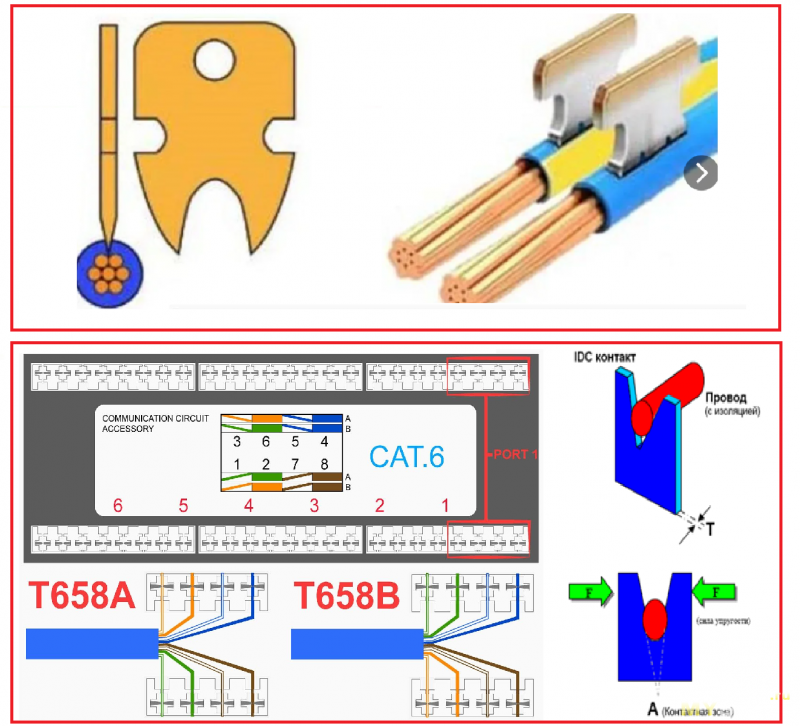 fluke networkто лучше вообще без него, начав с визуального осмотра правильности, дефектов разделки витой пары или самого разъёма розетки/патч-панели, все же знают что использующаяся для прокладки трассы SOLID витая пара не предполагает никакого обжатия в разъём и использования в роли patch-корда, а только быть заведённой или в патч-панель или в розетку. Тут главное чтобы кабель имел стационарное положение, так как он уязвим к любым изгибающимся нагрузкам и разлому жилы. А для самого подключения устройств предназначена PATCH (многожильная) витая пара. Собственно почему разъёмы 8p8c (RJ45), или будут раскалывать жилу пополам или соприкасаться с одной стороны, и не будут иметь надёжный контакт, как и собственно многожильный в патч-панель или розетку. Банально из-за полностью противоположного способа фиксации самой. На всякий укажем где какой и чего предназначен:Вверху в штекере разъёма 8P8C (он же RJ45 в обиходе, он же конектор ) для PATCH