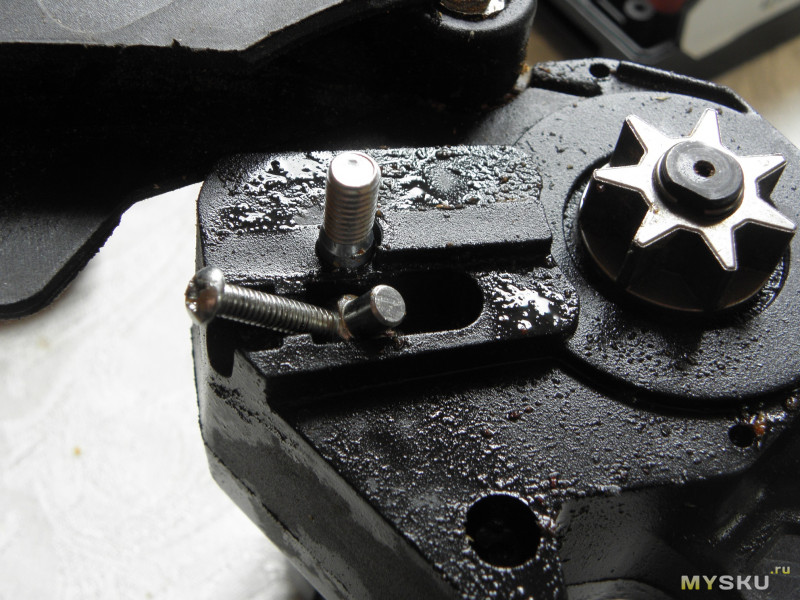 Кстати, перед применением пилы был разбор полный с целью осмотра наличия смазки в редукторе. И оказалось, что не хватает 1 винта крепления пластикового корпуса редуктора к корпусу пилы. Хорошо, что они все винты одинаковые. И поэтому переставил один винт с крепления двух половин корпуса.