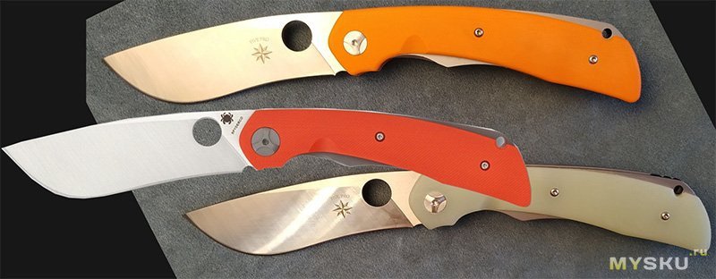 Причем с разными вариантами клинка и цветом накладок на рукоятку