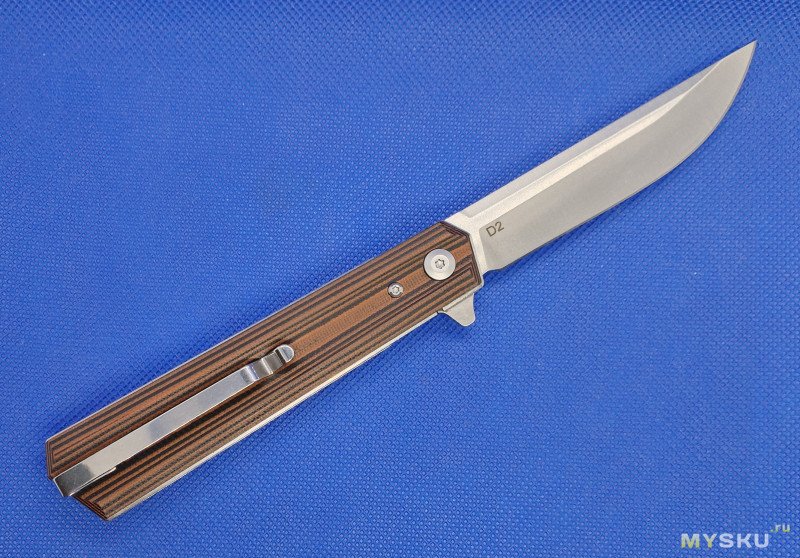 Как и получилось в моем случае: кроме аббревиатуры D2 – обозначение марки стали, на клинке нет никаких надписей и логотипов.