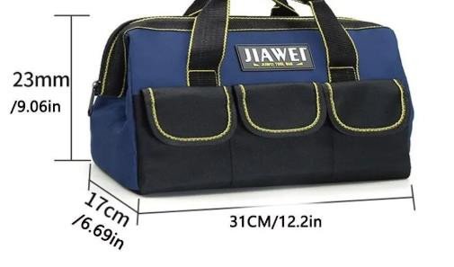 Понапокупал инструмента аккумуляторного без ничего, а хранить в картоне заподло. Решил присмотреть сумки для хранения и транспортировки. Для начала приобрёл данную модель. Первое впечатление вполне положительное. Основной материал — очень крепкая синтетическая ткань. Основной цвет — синий. Внутри вставка из водонепроницаемой клеёнки — удобно мыть при загрязнении. Для рыбаков можно носить живца. Единственный неочевидный недостаток — один замок в молнии. Обычно в таких устройствах два встречных. На странице продавца очень много отзывов, в основном, толковых и положительных. Поэтому забивать дерьмом и фотографировать не стал. Только фото девайса, для которого покупал. Как видно, на одной стороне 3 кармашка с клапанами для мелочей. С другой — 2 без клапанов. Типа инструкции, деньги бумажные можно положить. Внутри никаких карманов нет.