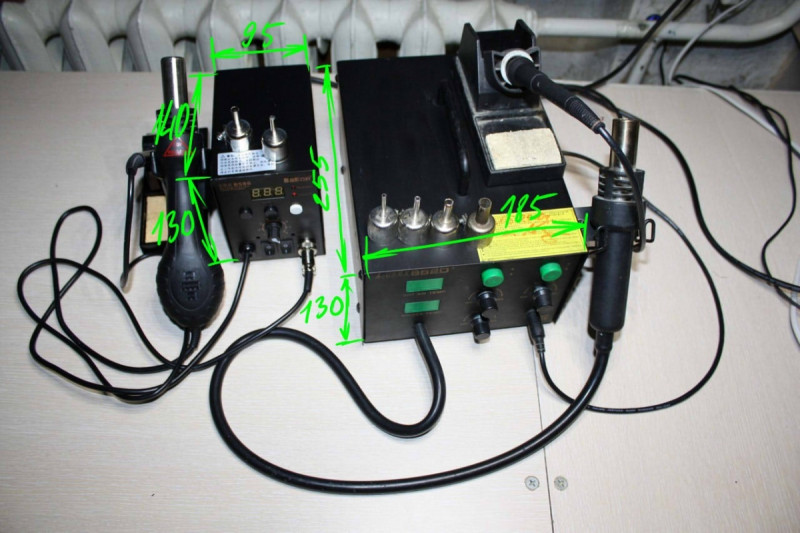 Так что всё очень просто и понятно. А с поддержанием температуры в нужных пределах справится любой паяльник с терморегулятором. Поэтому станция нам по большому счёту большая подставка для паяльника занимающая на столе место. Фен же можно купить отдельно и он будет тех же размеров что и в ней, только питаться будет не от неё, а от сети.