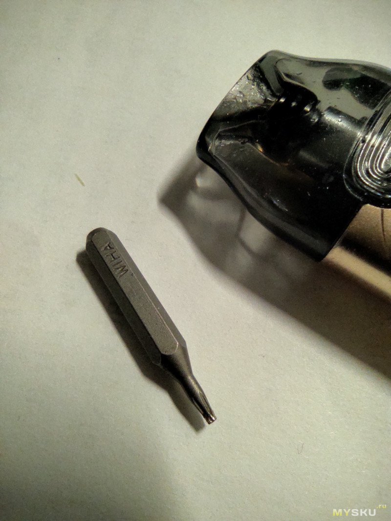 Важно — после нескольких доставаний бит из своих защёлок, те перестают их держать (как выше писал — они из дурного пластика, который не гнётся и видимо деформируется).