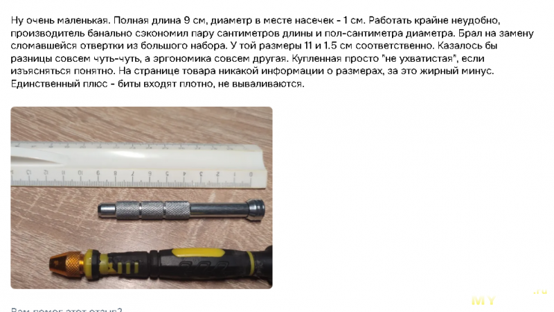 В Total рукоятка маленькая и не очень ухватистая, зачем может понадобиться еще меньше? Я бы наоборот в сторону более крупной смотрел, а то иногда сложно что-то выкручивать. Надо будет переходник с бит 6.35 мм на биты 4 мм поискать, чтобы можно было использовать ручку побольше.