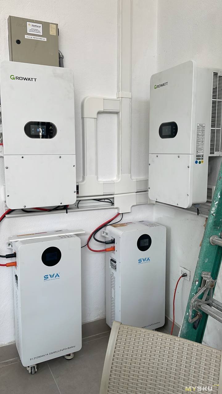 В системе не используются солнечные панели. У инвертора есть мониторинг и управление по Wi-Fi, но оно также в данном случае не используется, так как в доме только проводной интернет и нет Wi-Fi.