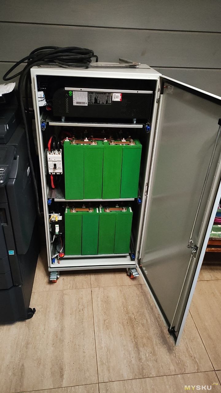 Не, понятно, что красиво и удобно, и вообще риспект и уважуха, но тогда закономерно, что ценник такой, а если «чтобы ехать» — то тысяч на 40 его бы урезать вышло спокойно. Убираем ящик, цепляем пару полок (каркас из трубы или уголка, сверху ДСП или фанера), всё это закрываем сеткой на прочтейшем каркасе (металл или дерево — кто с чем рабтать привык) чтобы котик какой не влез. Можно даже дверцу не делать, один чёрт туда лезть раз в год, можно и открутить несколько саморезов. Вентиляторы при таком подходе тоже не нужны. Автомат по DC — смысл? На BMS кнопка есть и собственные регулировки.