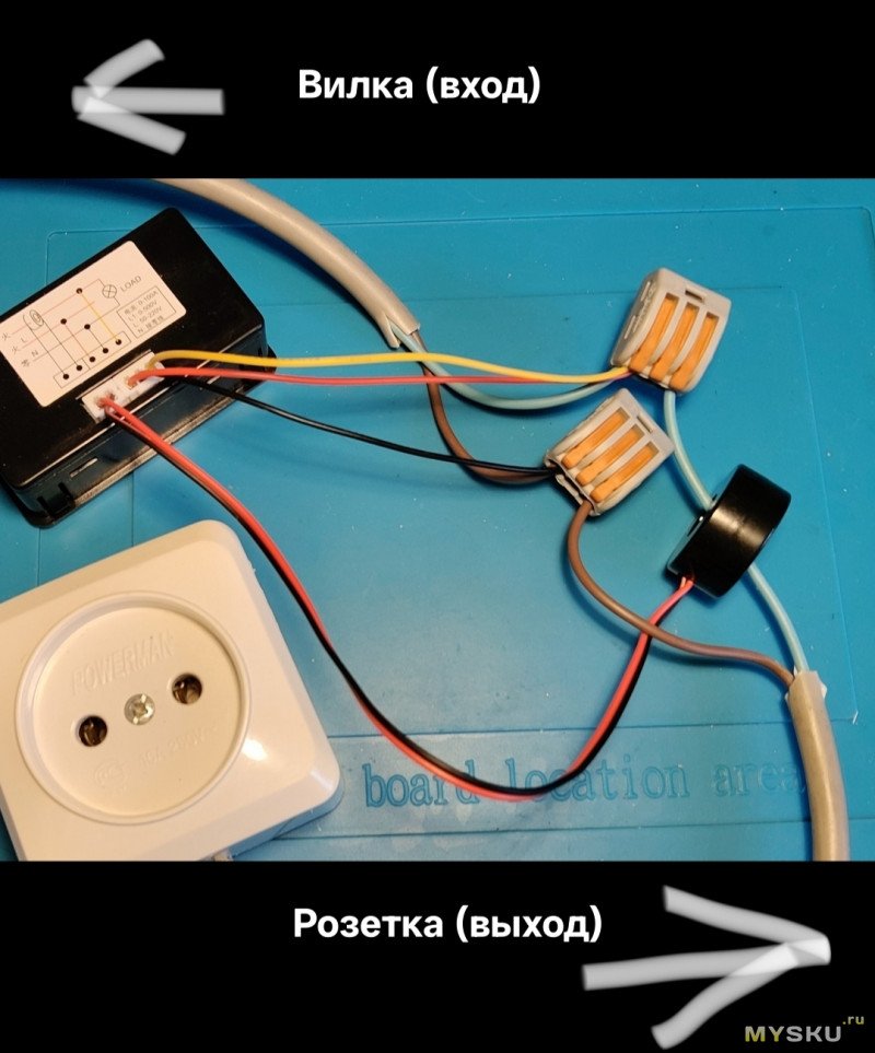 Кадры из видео с той страницы (снято будто специально, что б непонятно было куда что подключать, фокус в видео часто уплывал, поэтому четкие надписи входов на нагрузке приходилось ловить):