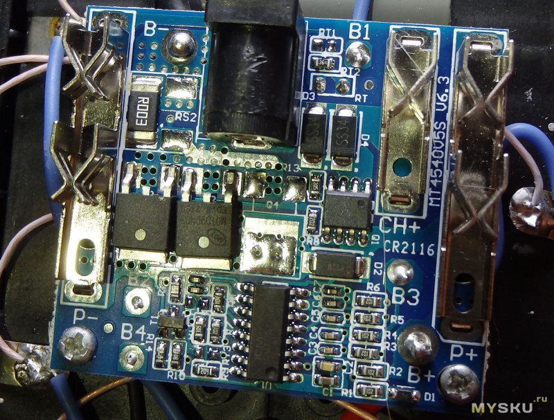 а вот внешние (конкретно минусовой) — имеют защиту от перРАЗряда (а так же кз и вероятно перегрева, если датчик припаян), за коммутацию здесь отвечают 2 транзистора в to252.