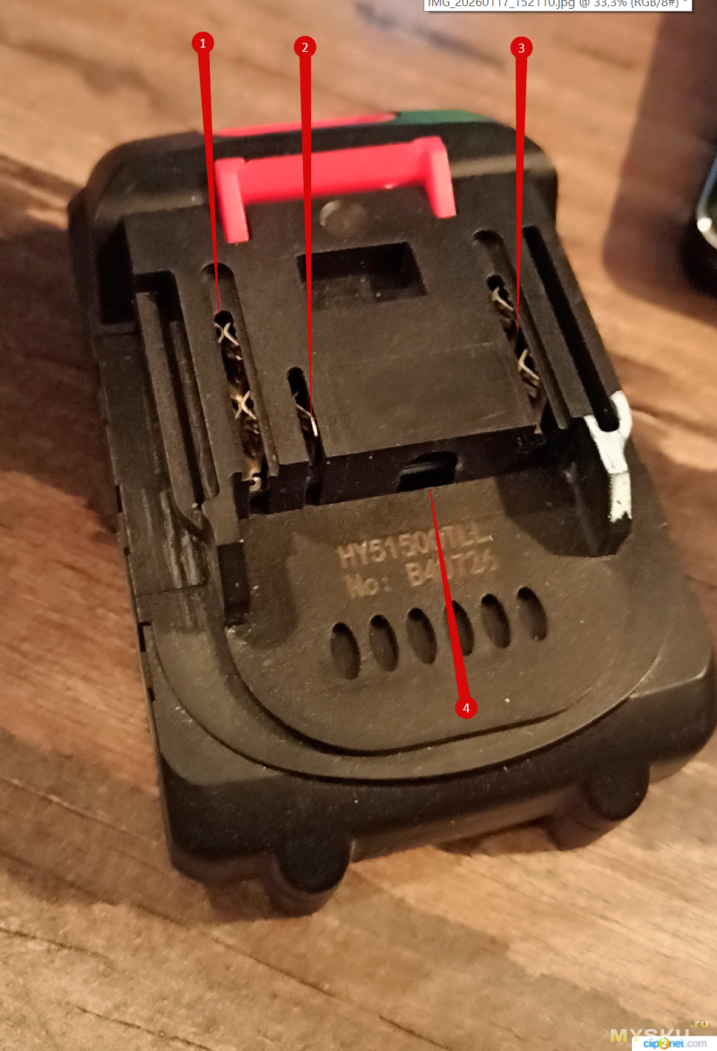 А у зарядного (4) на Маките (точнее, макитоподобных) — центральный контакт ВСЕГДА плюс. Но его и не подписать :)