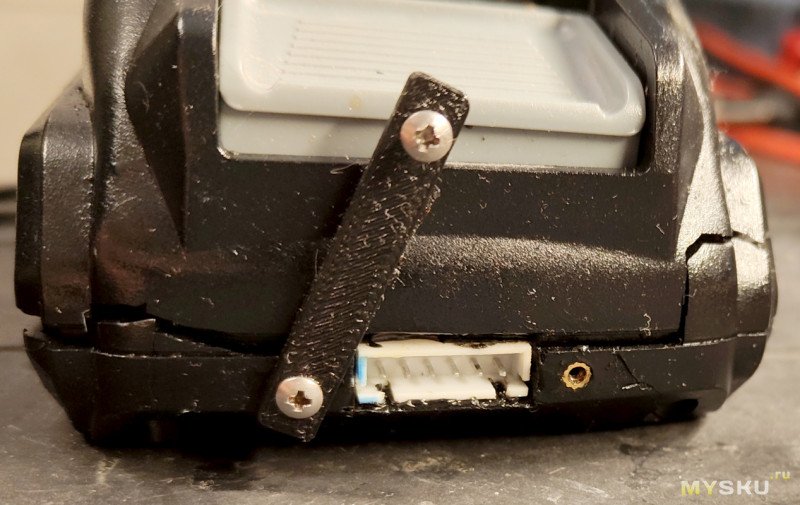 Зарядное устройство открывается с лицевой стороны шестью саморезами. Внутри открывается плата, занимающая не больше половины объёма корпуса. В зарядном устройстве имеется подключенный коммуникационный разъём, и используются 4 контакта (один из них локальная масса).