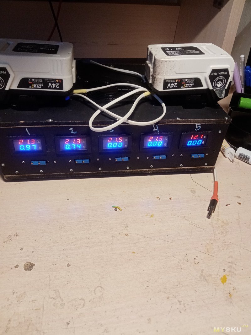 У меня 10-канальный такой зарядник (10х1А; обошёлся в 800 рублей), который можно использовать и просто как 10 независимых зарядников для Li-Ion. Правда, я использую его не для зарядки Макиты (у меня и нет с жёлтым разъёмом, и использовать его всё же проблематично, если инструмент использует его стандартно (надо и в инструменте тогда убирать соединения) — там лучше вывести отдельным разъёмом), а для разных своих сборок 3-8S, а также модельных LiPo через балансировочный разъём.