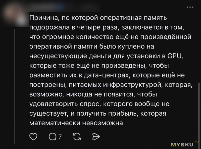 А микрон, к слову, заявил что выходит из consumer бизнеса и сосредотачивает поставки памяти и чипов для нее на дата-центрах.
