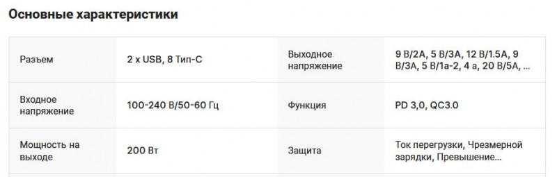Поддерживает протоколы PD 100 Вт, AFC (Samsung), Fast Charge, Fast Charge 2.0, Quick Charge, Quick Charge 2.0, Quick Charge 3.0.