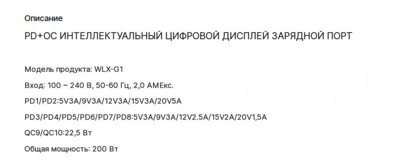 Согласно информации продавца о товаре, устройство WLX-G1 имеет 10 портов и максимальную суммарную мощность 425 Вт.