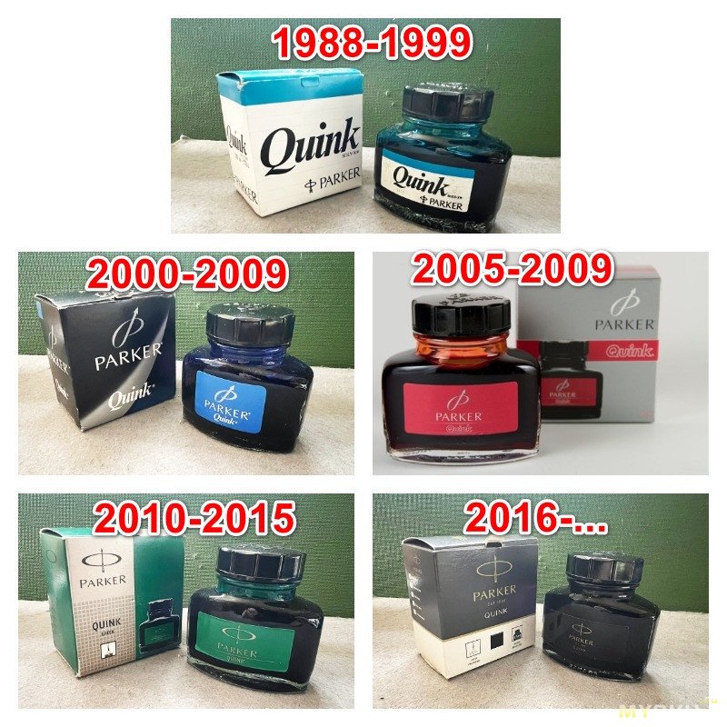 Чернила производятся во Франции, Индии (для Индии и Непала индийским производителем Luxor). В Китае разливаются черные французского производства, цветные Parker местного производства для продажи только в КНР. Производство чернил сворачивали постепенно начиная с США, потом в Англии и Китае (Parker Penman). По годам выходит в конце 90-х, начале 2000 годов.