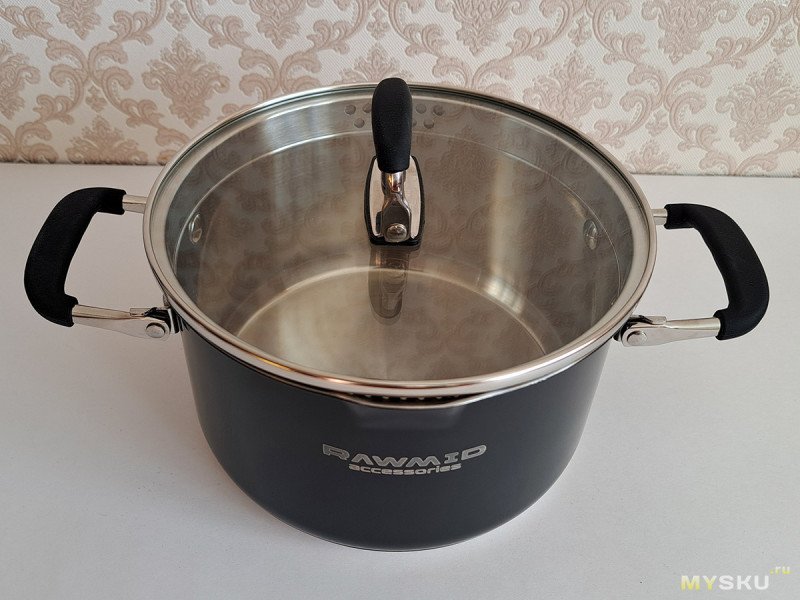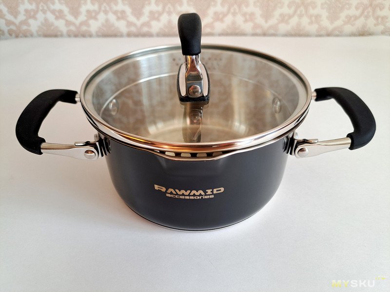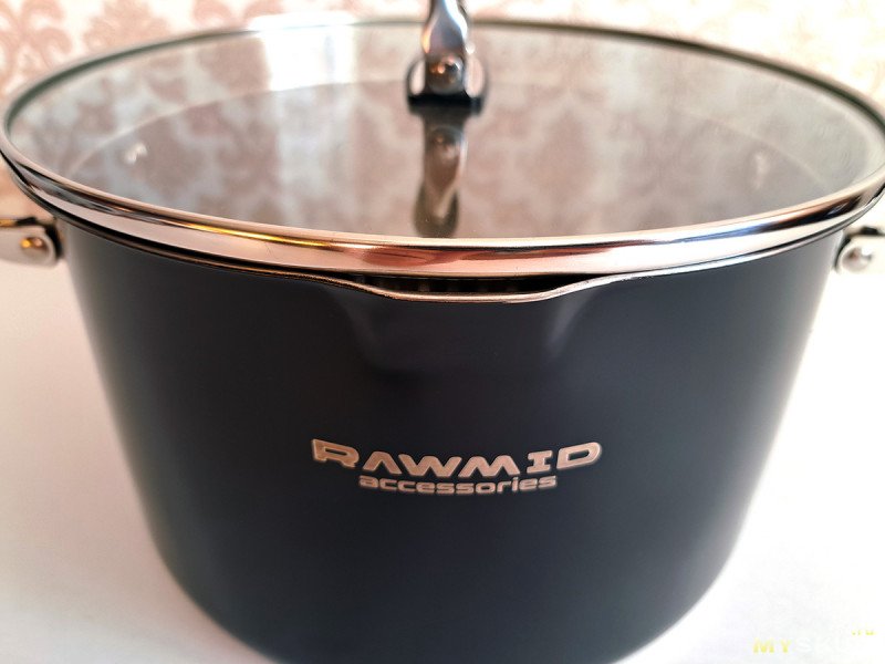 Из функционального — как минимум нет сливного носика на кастрюле и бортика у крышки.