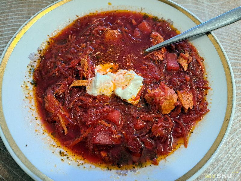Многие скажут, что это не борщ. Но для меня это идеальный вариант: кисло-сладкий с остринкой, и свекольного цвета. Единственная проблема, у меня всегда не хватает в кастрюле места для воды. И там в буквальном смысле может стоять ложка.