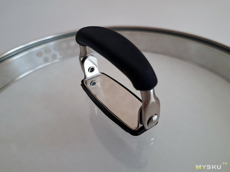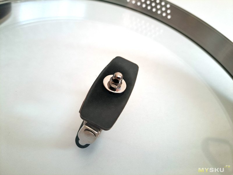 Ручка на стеклянной крышке фиксируется гайкой. При необходимости можно подтянуть.