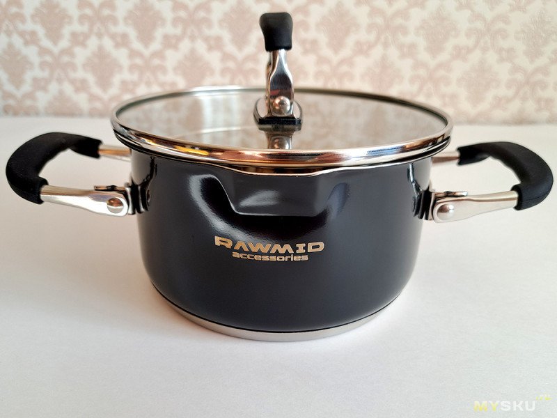 Ну и наконец, маленькая кастрюлька. Занятно, выглядит что ручки у нее такие же большие, как и у старших товарок. Но это логично, размер рук у пользователя тоже остаётся прежним, хотя объем посуды уменьшился.