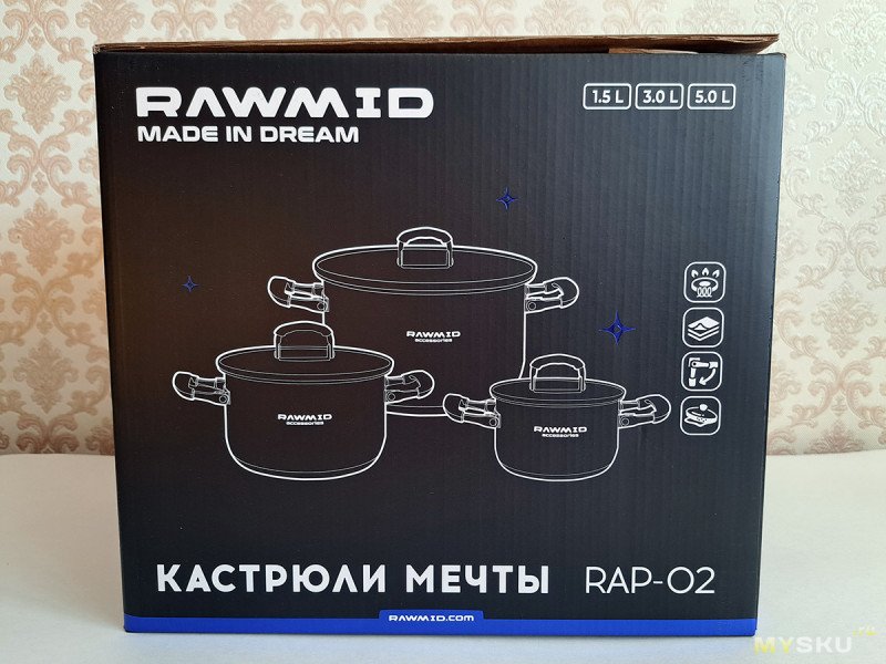 Набор приобрел в казахстанском филиале магазина MadeInDream вместе со сковородой RAWMID RAP-01.
