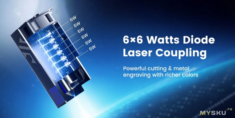 Мощность лазера: 36 Ватт.