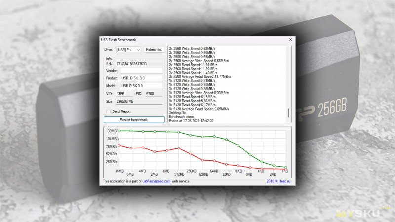 С производительностью ситуация двойственная. Синтетические тесты льют воду на мельницу маркетинга, рисуя красивые цифры до 135 МБ/с на чтение. В реальности вы получите комфортную скорость чтения (≈130 МБ/с), что отлично для запуска программ или просмотра видео прямо с флешки. А вот запись больших объемов данных превращается в испытание терпения: падение скорости до 11 МБ/с при заполнении диска – это суровая действительность.
