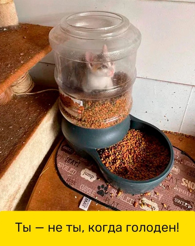 Корм насыпаю сам потому что ну как минимум надо убрать «огрызки» и помыть от шерсти…