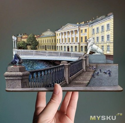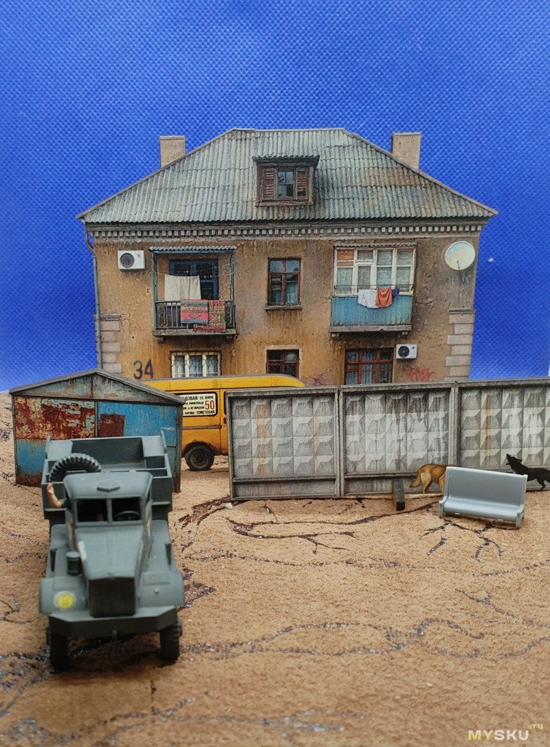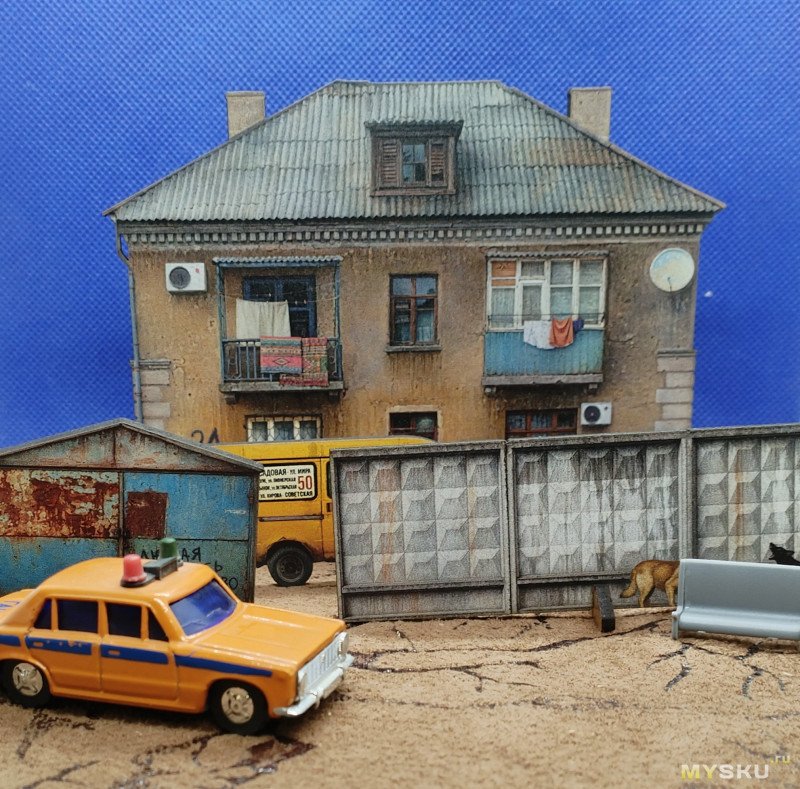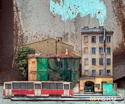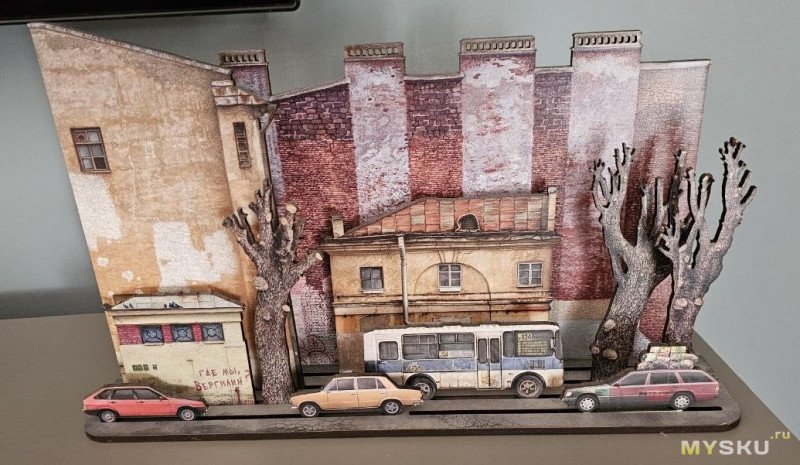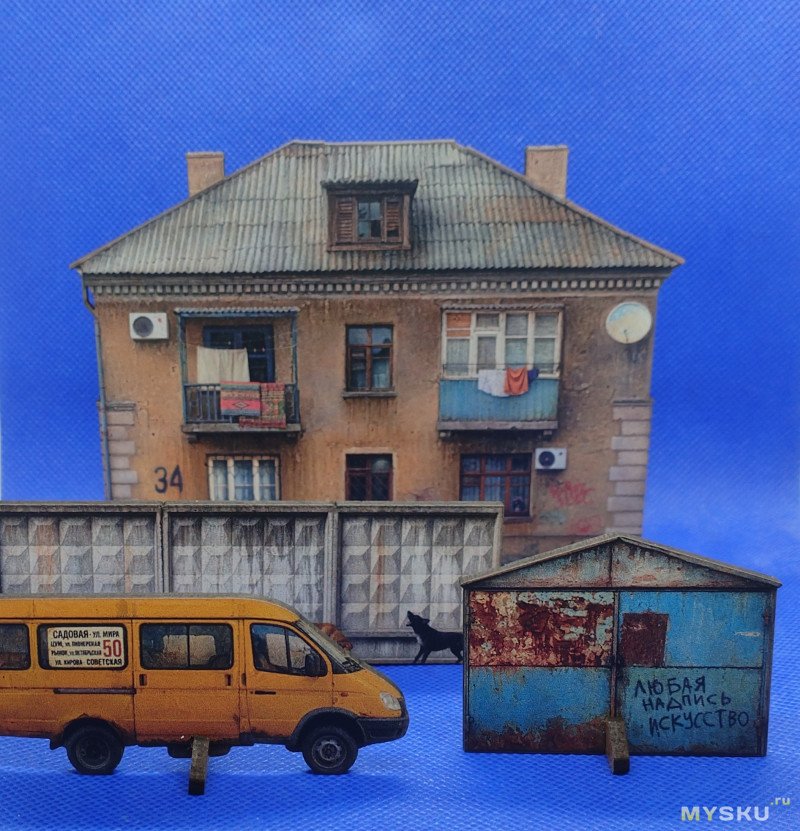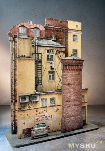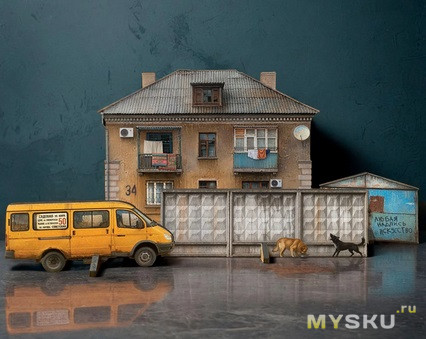 Использовать этот конструктор как элемент диорамы – несколько сложнее, но вполне можно к тем же моделям-копиям машин или другой дорожной технике. Но цена… С одной стороны, понятно – авторская работа, уникальность, качество, вариативность и т.д. С другой, я сам делал такие элементы диорам, и они ничего не стоили, ну кроме вырезанных картинок пейзажа и строений. Но я купил, хотя мне скорее это совсем не в тему. Но, с удовольствием в дальнейшем куплю еще для подарка, т.к. знаю коллекционера, которому это понравится.