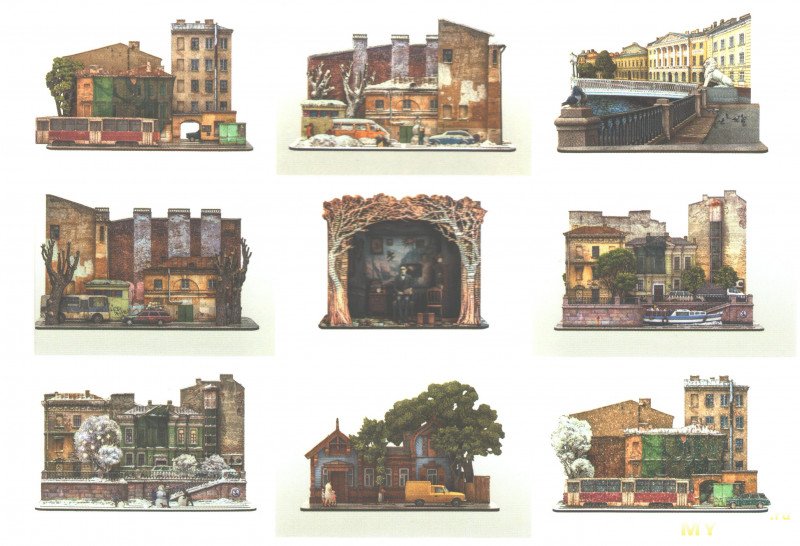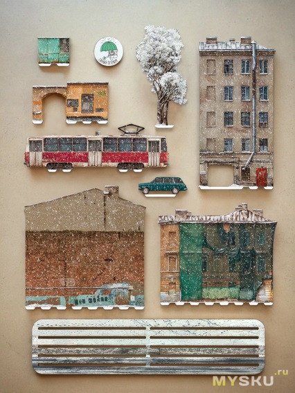 Конструктор из пластин древесно волокнистой плиты высокой плотности толщиной 3мм. На пластинах дома, пейзажи, люди из прошлых лет прошлого века. Как подарочный набор, из которого можно собрать свой личный не парадный уголок своего любимого города – это просто прекрасно. Если интересно — прошу под кат.