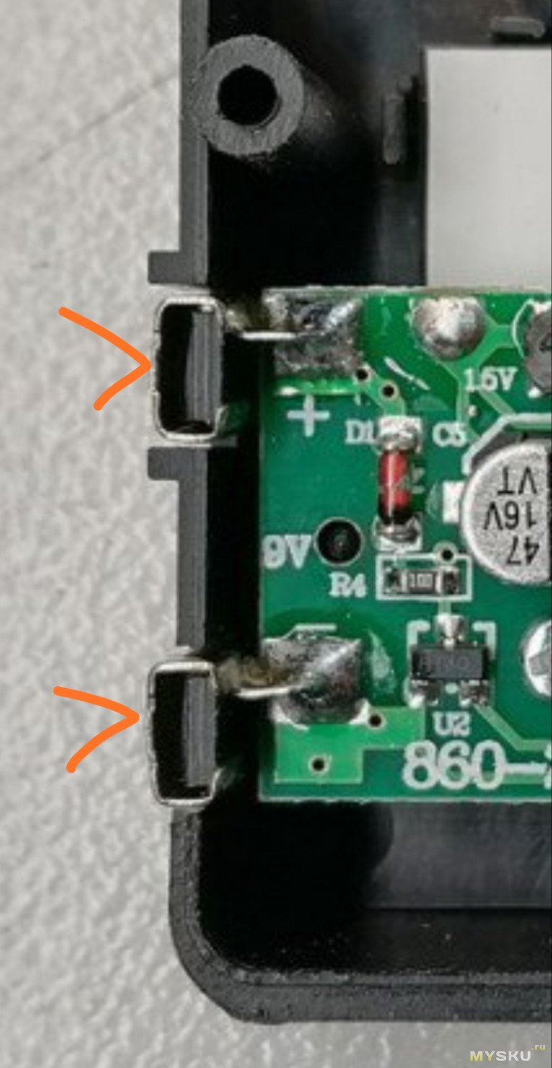 Собираем прибор, и проверяем точность измерений на щелочной батарейке.