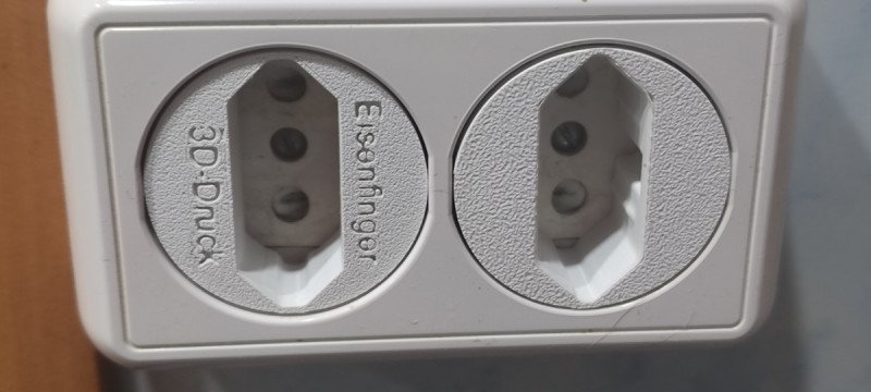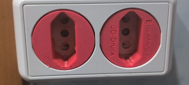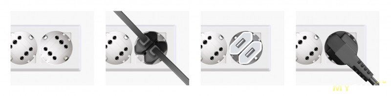 Такой фиксатор позволяет плотно зафиксировать электрическую вилку с тонкими штырями — евровилку типа С в розетке типа F — Schuko. Это особенно актуально для популярных сегодня GAN блоков питания, которые как правило имеют солидный вес и прогибаются под ним в таких розетках.