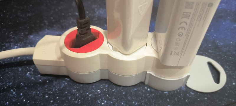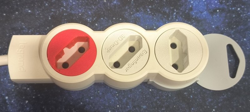 А вот в эту розетку фиксатор вошёл не до конца, выступив наружу на пару миллиметров. Это связано с тем, что в этой розетке, в отличие от предыдущей, есть бортики под выступы на вилке, которые производитель фиксатора не учел при проектировании 3D модели.