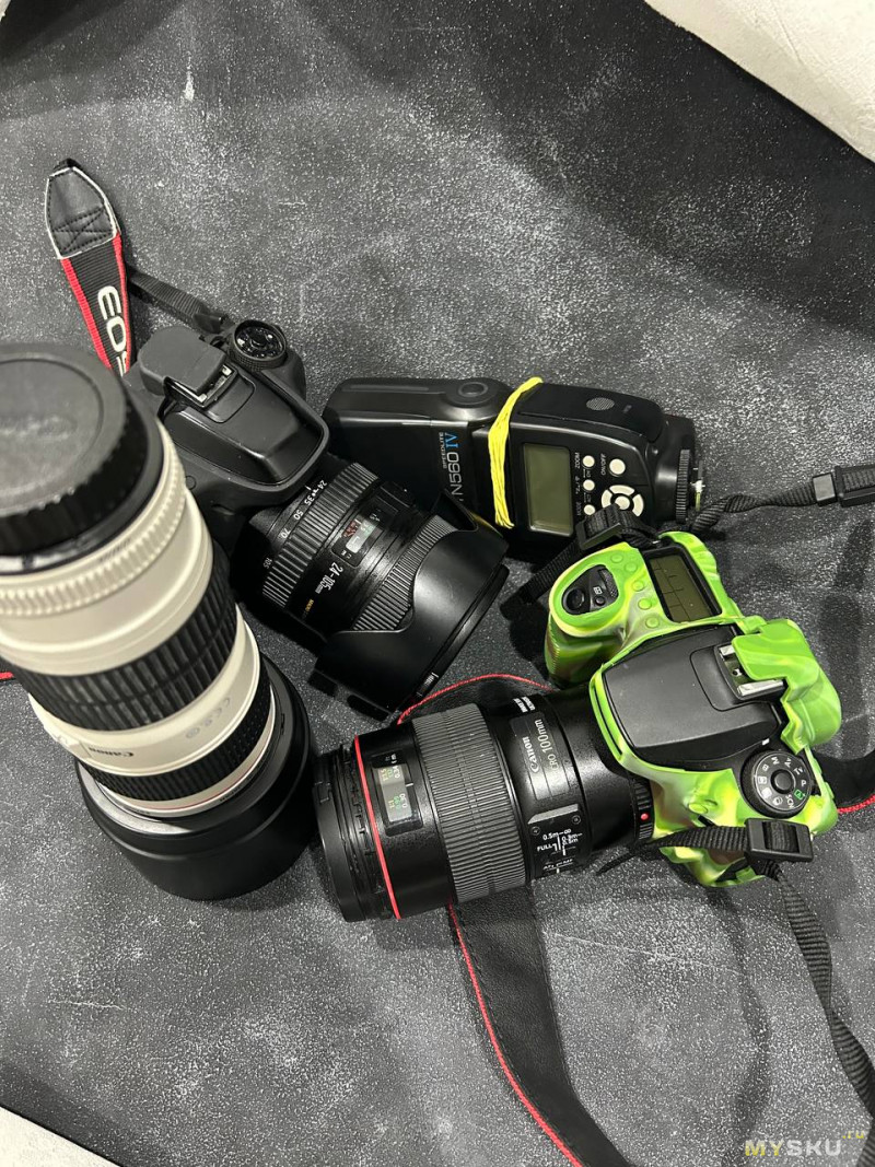 На фото малая часть моего скарба фотографа — любителя. Лет пятнадцать назад я приобрел первый фотоаппарат, а потом так и не смог поменять его на телефон. Фон, если заметили, тоже любимый. На этом же фоне сделана одна из фотографий выше. Да он мелькает не только здесь. Рубашку тоже могу показать, но ведь все равно не поверите)))