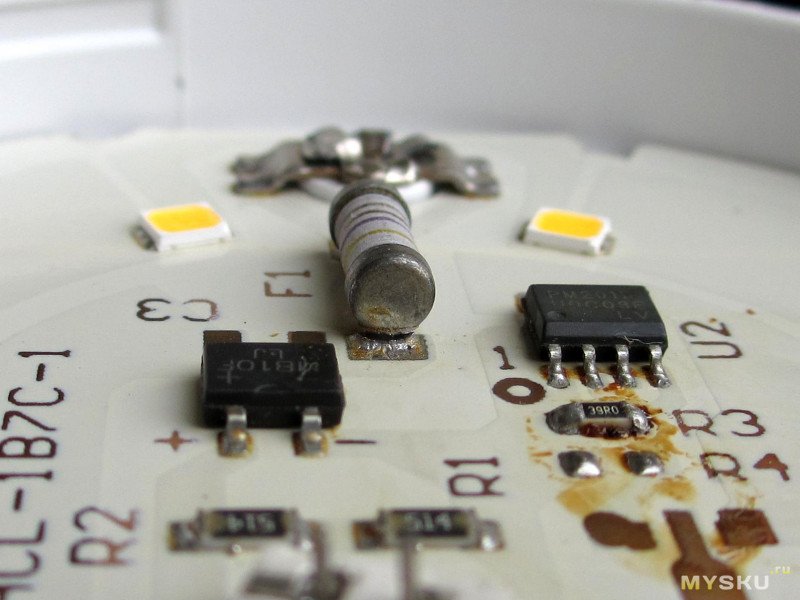 upd.03.2026 — у Ionich/6Вт отвалился предохранитель (дурить начало еще прошлым летом, но грешил на патрон, ибо от шевеления лампы в нем контакт появлялся, но оказалось что влияла деформация платы лампы). здесь уже чуть поддетый, что бы убедится в причине, исходно трещина была меньше: